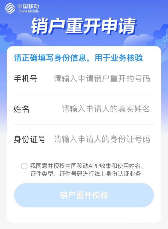 中国移动App上线“线上销户”“销户重开”功能