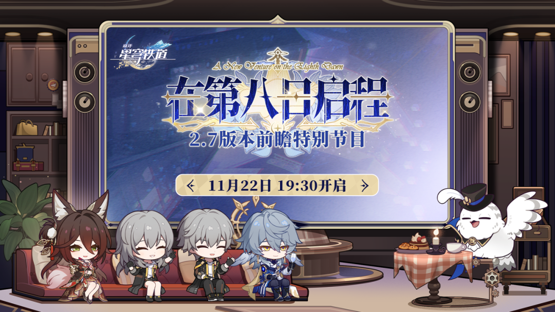 开拓者好,《崩坏:星穹铁道》2.7版本「在第八日启程」前瞻特别节目将在11月22日19:30正式播出。