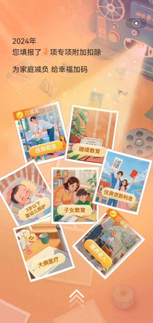 税费优惠照亮生活点滴,税收红利带来美好期许。“个税记忆”记录了过去一年您享受的专项附加扣除、减免税等税收优惠。温馨喜悦的画面构图,更是凸显了幸福感和获得感。
