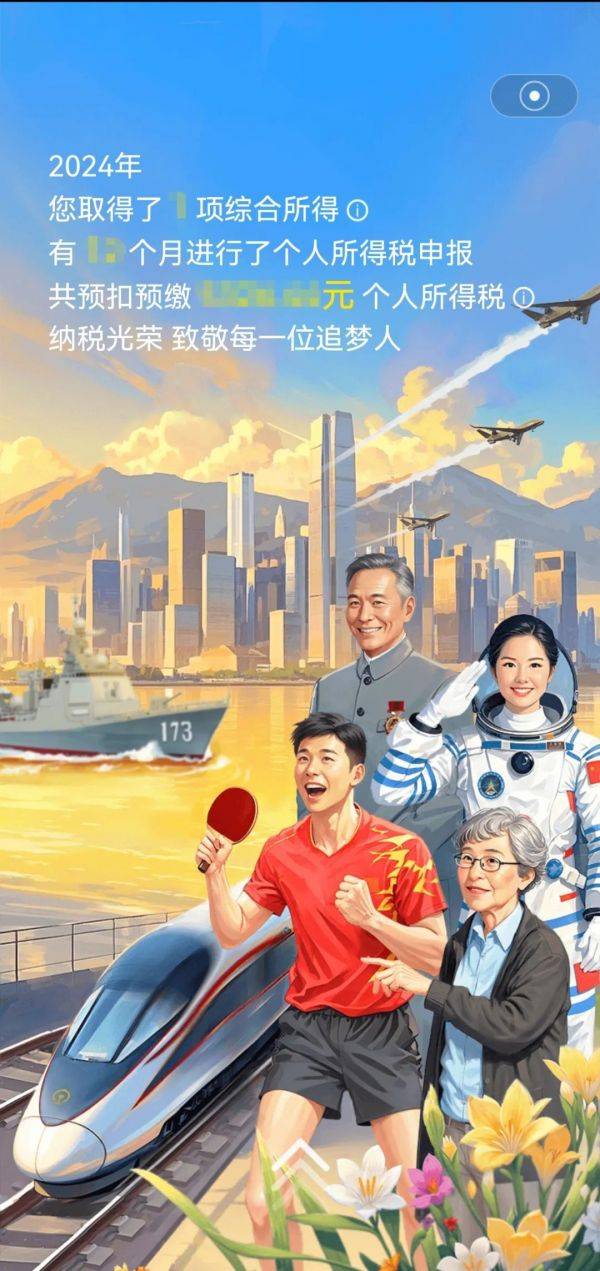 “个税记忆”通过盘点过去一年关键性的收入、纳税等信息,让您对2024年的纳税情况一目了然。税收之力,滋养着国家发展的每一寸土壤,守护着民生幸福的每一个梦想。我们以*诚挚的敬意,向每一位依法纳税的您致敬!