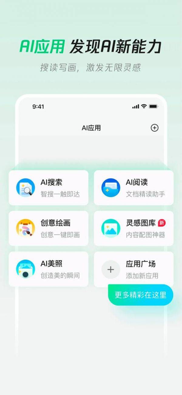 据介绍,界面方面的升级包括更新对话列表,支持历史使用资产沉淀,用户可更轻松地查找历史对话和用过的智能体;新增 AI 应用专属板块,精选 AI 搜索、AI 阅读、创意绘画、灵感图库、AI 美照五大应用,以及“应用广场”可提供类型丰富多样的智能体。此外,AI 搜索功能除微信公众号外,还升级整合微信视频号、QQ 音乐等信息资源,提供更加智能、便捷的搜索服务。