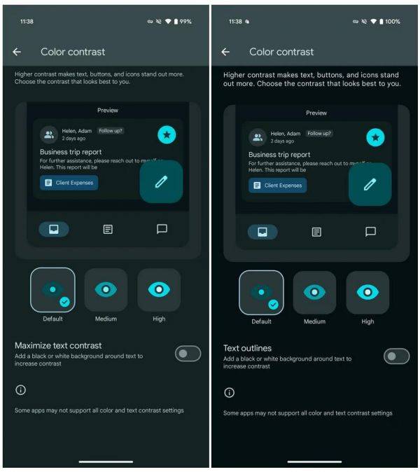 设置中的“*大化文本对比度”新增了“文本轮廓”选项。