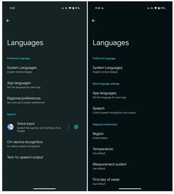 在“系统”设置的“语言和地区”中新增了“地区和测量系统”选项。