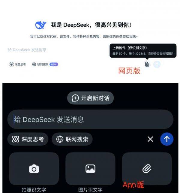 相较于网页版本,DeepSeek的App版本还额外提供了「拍照识文字」的特色功能。