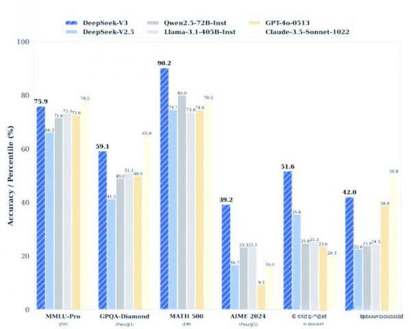 近日备受瞩目的DeepSeek V3模型,以其强大的性能在AI圈掀起轩然大波。这款模型以1/11的算力训练,成功超越了Llama 3,展现了其卓越的训练效果。作为一款参数量高达671B的MoE模型,DeepSeek V3在14.8T高质量token上进行了充分预训练,激活了惊人的37B参数。值得一提的是,DeepSeek V3一经发布便完全开源,成为开源领域的佼佼者,与GPT-4o、Claude 3.5 Sonnet等顶尖模型并驾齐驱。更令人欣喜的是,其价格仅为Claude 3.5 Sonnet的9%,性价比极高。