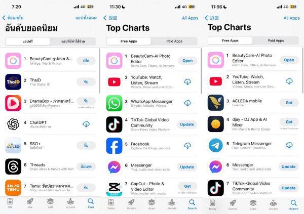 美颜相机BeautyCam登顶泰国、老挝、柬埔寨三国App Store总榜*