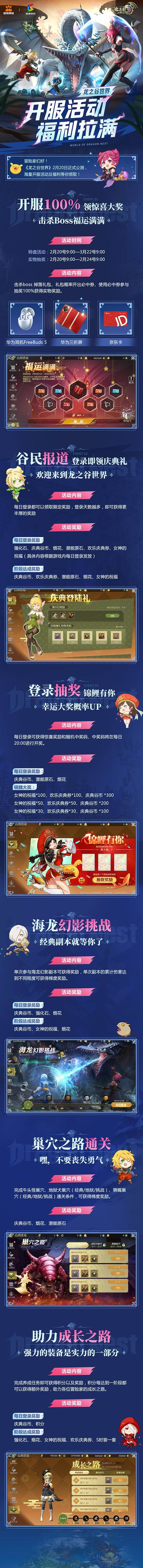 2月20日龙之谷世界穿越时间长河与冒险家重逢,为了庆祝我们的青春如约而至,我们设立了开服福利活动(详细见下方活动海报)。