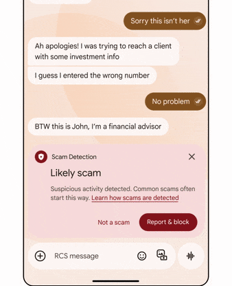 Google Messages 现引入 AI 技术,能够识别诈骗相关的对话,并向用户发出实时警告。用户可轻松屏蔽并举报可疑对话,避免财产损失或敏感信息泄露。该功能在设备本地运行,确保用户隐私安全。