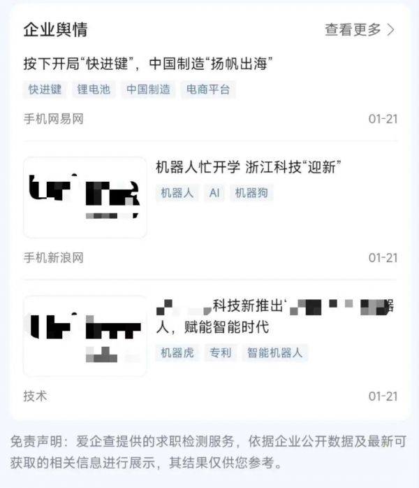 招聘信息以及公司新闻,也是求职者了解目标企业的一扇窗口。在爱企查新上线的功能中,也对这两方面信息进行了集合,求职者可据此辅助自己的求职判断。