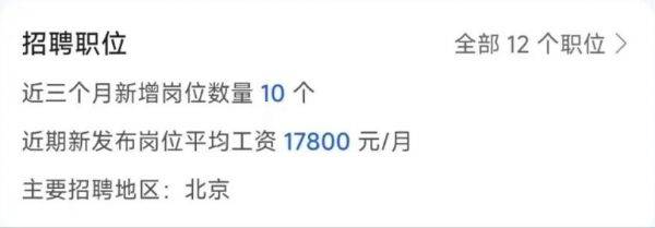 目前,在「招聘岗位」查询维度下,目标企业的招聘现状都可以一览无余。如,近期新增岗位、近期岗位平均工资、主要招聘地区等。