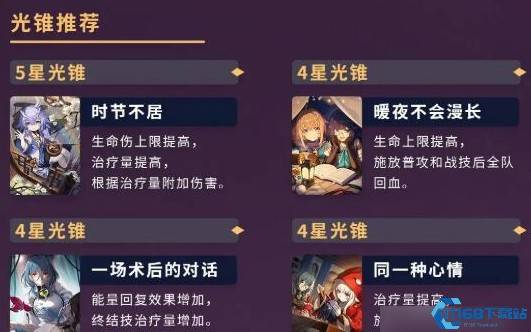 - 同一种心情(四星):提升12%治疗量且战技后恢复8点能量,优化技能循环