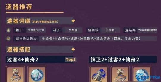 过客四件套提供10%治疗加成与开局额外战技点,仙舟两件套提升12%生命值并激活全队攻击加成。主词条选择: