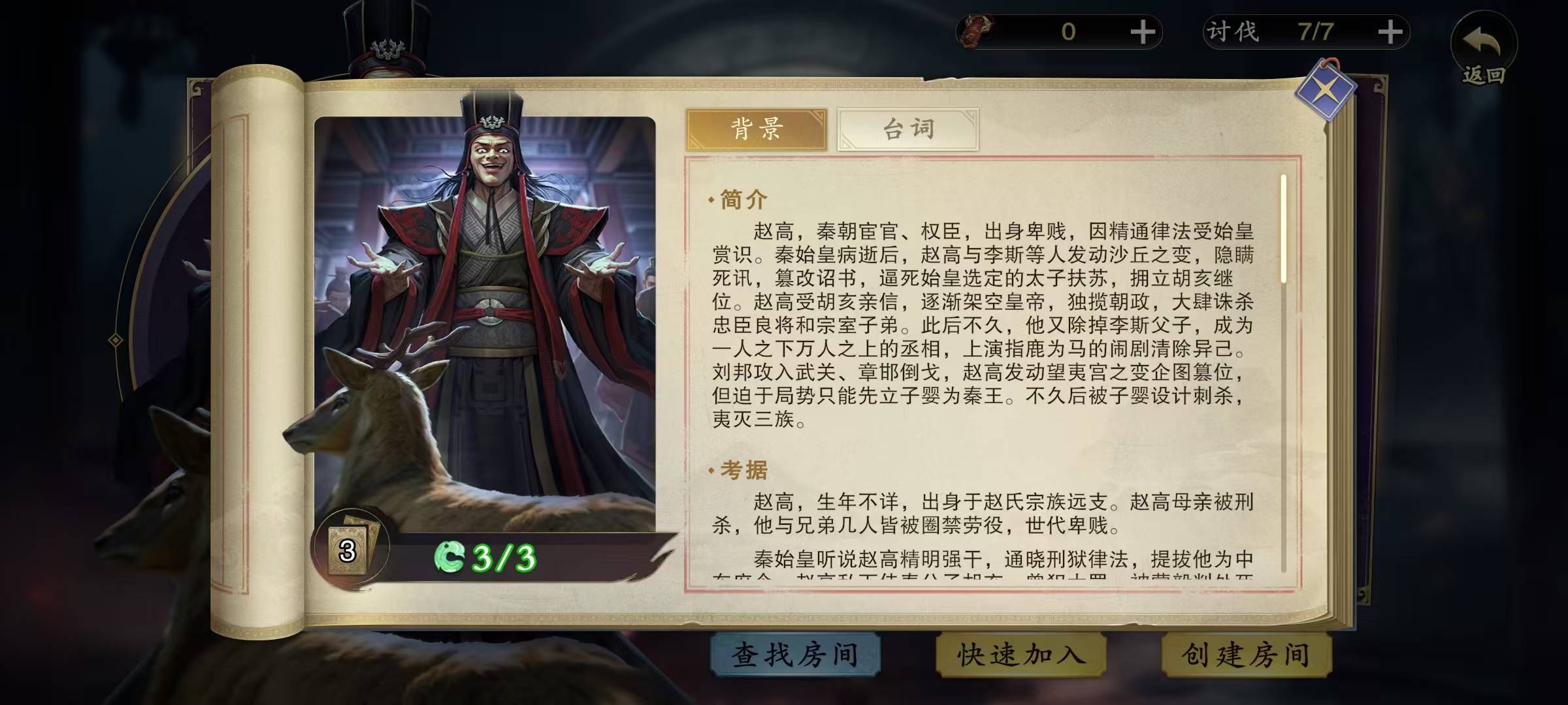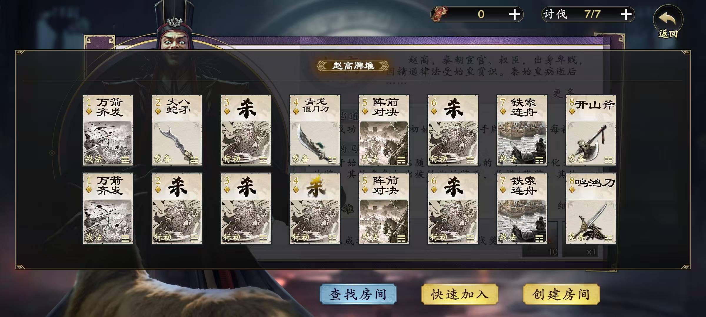当有队友倒下时,赵高会瞬间掠夺其全部家当(手牌/装备/卜卦牌)并开启暴走回合!此期间所有玩家无法响应卡牌,回合结束还可能满血复活!生存法则:速战速决!建议优先集火避免队友减员。