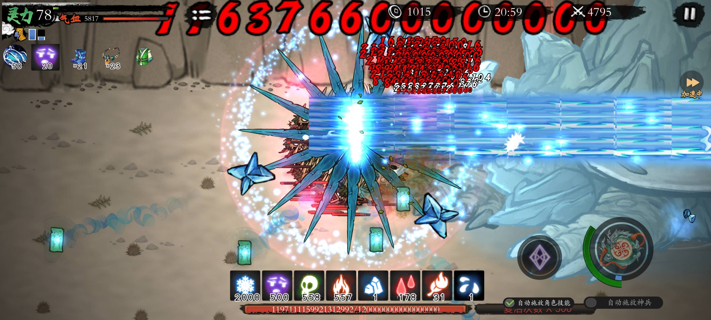 功法四件套:木弩(冰霜叠层器)+追魂剑诀+环刃(三秒叠满冰霜buff)