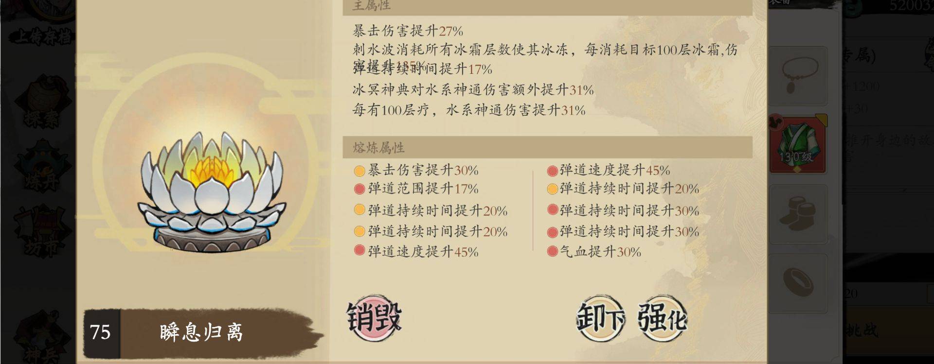 输出三件套:万华引身+噬魂式+镜神法·水(爆伤直接+150%就离谱!)