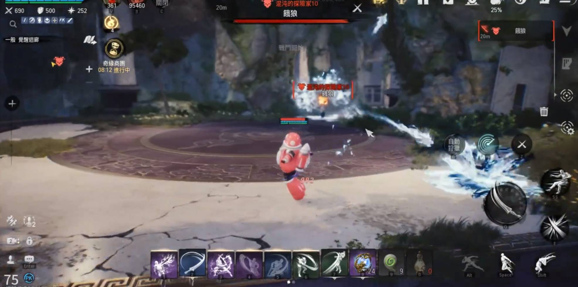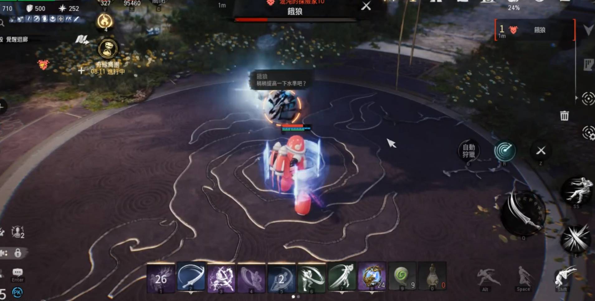划重点!刚滑进试炼场千万别急着贴脸!饿狼见面就给你整两波剑气套餐:第一波是笔直的冰霜剑气,保持横向蛇皮走位就能轻松躲过。第二波追踪剑气才是真杀招!这时候要像陀螺一样绕外圈跑,记住"距离产生美",就算躲开爆炸点也要保持3米安全距离,否则会被溅射伤害教做人!