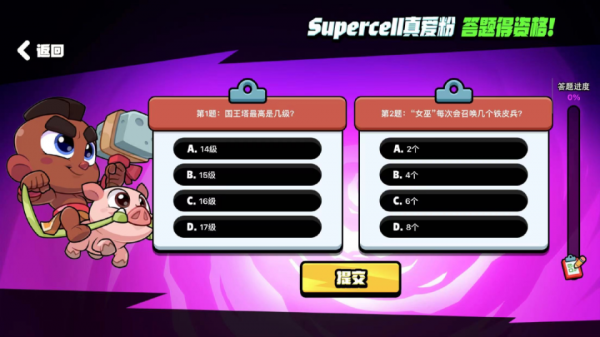 随着今天游戏开始不删档上线,不少资深玩家和真爱粉已经早早拿到资格。当然,现在玩家也可以通过参加「真爱答题」活动,选择一款玩家最熟悉的Supercell游戏,凭借对游戏的了解,测试玩家对游戏的了解,以此获得资格。