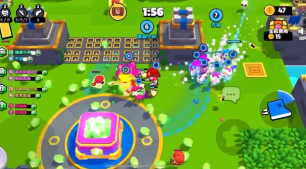 在经典的宝石争夺模式中,最多会有10名玩家匹配到一起,玩家需要操作自己的小队,通过打野、PVP抢夺金币和宝石,金币可以在地图上的宝箱里开启新的小队成员,宝石则可以在结算后带出对局,用于养成。简单来说,局内玩法遵循大鱼吃小鱼的规则。