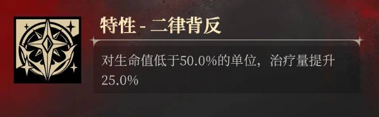 队友半血以下触发25%治疗加成!建议搭配自残流角色,残血时直接进入"狂暴奶妈"模式,奶量瞬间突破天际!
