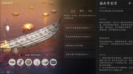 燕云十六声福舟寄彩宵活动材料获取与兑换全攻略