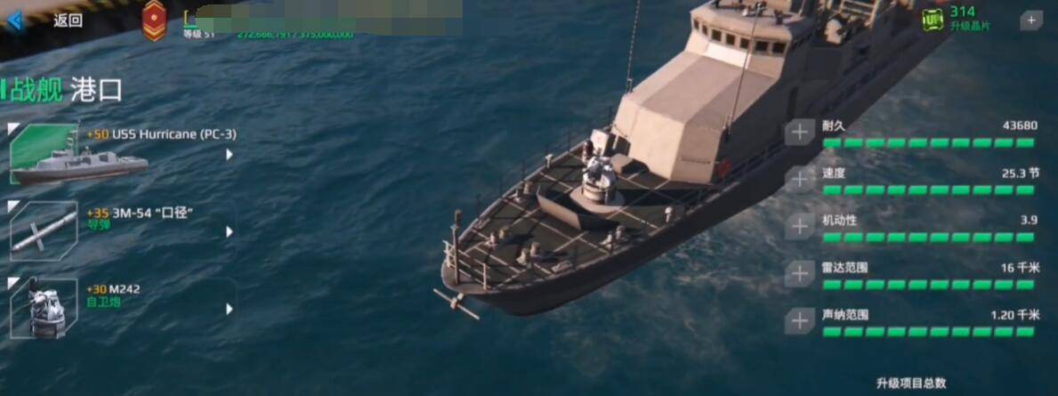 优先升级导弹预警系统,近防炮升级至蓝色品质即可形成有效火力网。