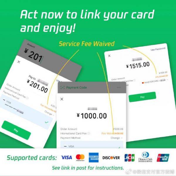微信支付推出境外用户专属优惠 首绑卡可享60天手续费减免