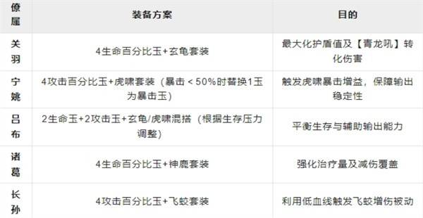 阵容配置:关羽(主T)+ 吕布(副T)+ 诸葛亮(控场大师)+ 宁姚(辅助控)+ 长孙无忌(全能辅助)