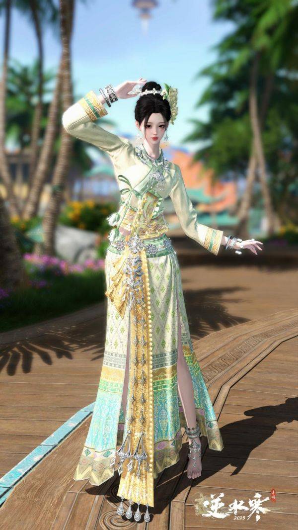 在 3.0 新赛年,逆水寒为玩家准备的一份特殊的赛年礼物,便是以“傣族”为主题,打造的一款极具民族特色的新赛年限定时装。