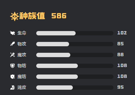 总值586:在洛克王国宠物中处于中坚力量梯队。