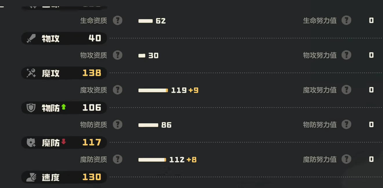 初始速度即处于中上水准(约100+),而进化后产生质的飞跃!速度区间稳定在120-135点之间。这意味着它在实战中有极大概率抢夺关键先手,先发制人!