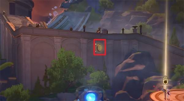 注意观察你的左前方(地图西侧)!就在主路旁相对开阔的地带,一枚闪烁着微光的翻飞之币正悠然悬浮在约一人高的半空中。它算是三枚中最“光明正大”的一位,算是旅途友好的见面礼。操控扎格列斯之手,轻松拿下它!