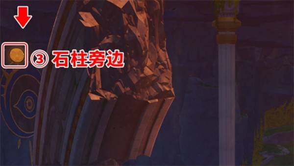 最后一枚硬币的位置相对更具挑战性。请将目光投向区域北部或西北部,寻找显著的大型石柱结构。