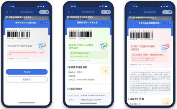 使用微信“扫一扫”扫描药品追溯码后,用户可通过腾讯健康药箱获得三种查询结果:未查询到该产品销售信息,查询到一次医保药品 / 耗材销售信息,查询到多次医保药品 / 耗材销售信息。
