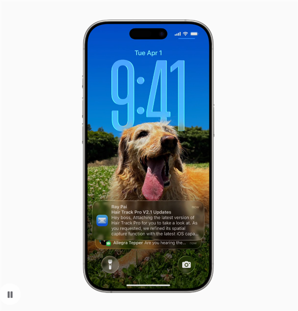 在锁屏上,时间会根据墙纸图片的可用空间进行调整,空间场景功能会在用户移动手中的iPhone时,通过3D效果让墙纸栩栩如生、呼之欲出。