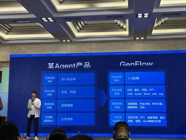 百度文库还宣布多智能体协作能力“GenFlow超能搭子”全新升级为2.0版本,体现了百度文库在全模态处理、输出上的领先能力,使其成为率先实现全场景满足、全链路覆盖的多智能体协作应用。GenFlow超能搭子在任务完成耗时、交付内容丰富度、信息检索范围、内容编辑能力上已达行业领先。