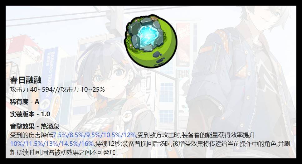 | 春日融融 | 攻击力25%+减伤回能 | 高压生存局 |