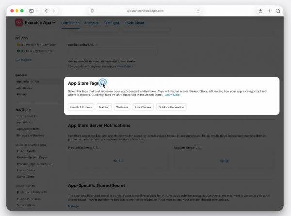 系统自动生成的标签会展示在App Store Connect后台的App信息部分,开发者可以在这个位置选择或取消哪些标签显示在App Store中。