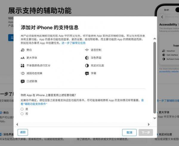 ①开发者不能随意选择辅助标签,如果App涉嫌故意标注误导性的辅助功能信息,可能会影响App审核(比如苹果的审核团队可能会联系开发者,要求其更新辅助功能标签)。