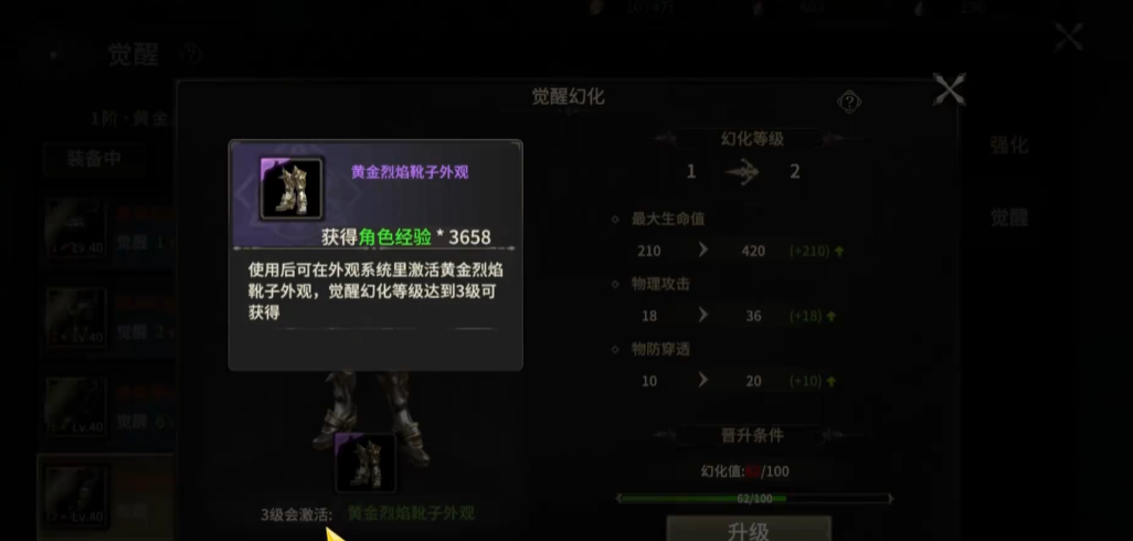 觉醒双重收益: 每次对黄金装备进行觉醒,不仅能永久提升该装备的基础属性,更是获取幻化值最直接、最主要的途径!