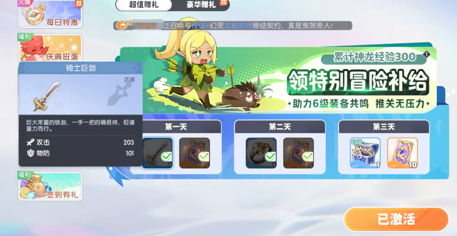 - 机制详解: 玩家需要通过氪金充值累积充值积分。当积分达到活动设定的特定档位要求后,即可在活动开启后的三天内,直接领取对应的骑士套装部件。这是实打实的“直通车”,让你跳过苦苦刷装的漫长过程,开局即巅峰!