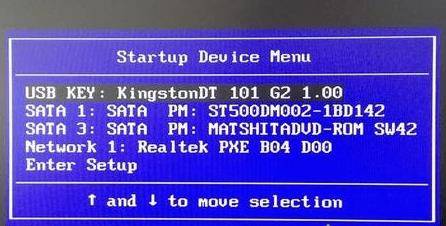 在出现的启动设备选择菜单中,使用方向键选中你的U盘设备(名称通常包含USB或U盘品牌),按回车确认。