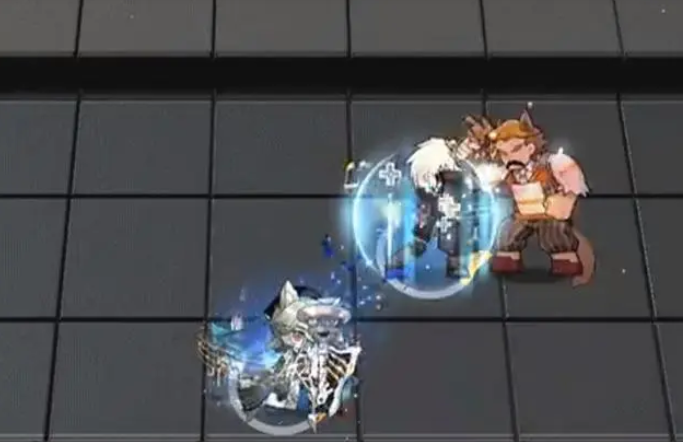 而具体的Q版本小人除了稳定发挥之外,最关键的是特效也很细节,不论是普通还是回血的特效都很靠谱,细节设计上很考究,而且这种深蓝色的特效在游戏中的体验也是一流的。