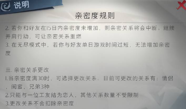 冷却警示: 若与好友连续15天未增加任何亲密度,现有亲密关系将自动中断!保持互动是关键。