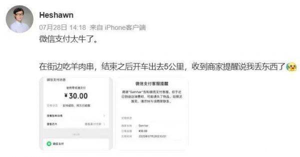 还有网友反馈,微信支付似乎出现了可以提醒付款人有遗失物的功能。