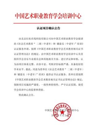 近日,红松app官宣正式启动银发艺术培训认证服务,上线行业*面向银发人群的“艺术能力水平认证系统”。该服务由中国艺术职业教育学会培训中心(下称“培训中心”)联合红松集团共同打造,首批认证聚焦键盘乐和二胡两大器乐类目,认证报名通道将于8月19日面向公众开放。该项目的落地,标志着银发艺术培训领域迈入标准化、专业化发展的全新阶段。