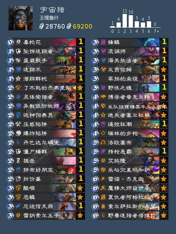 来自王噗鲁什的宇宙猎,他使用这套卡组在月初打到传说第二名, 并且之后稳定在传说前20