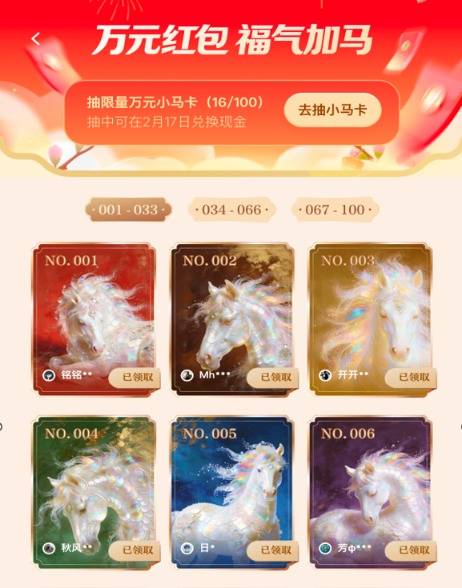 此外,同日0点,腾讯“上元宝,分10亿”活动开启。该活动从2月1日持续到2月17日,一上线便引发了全网狂欢,超过10张万元小马卡被“翻牌”。用户去手机应用市场将元宝APP更新至2.56.0及以上版本,即可参与“分10亿现金”活动,*高可领一万元。