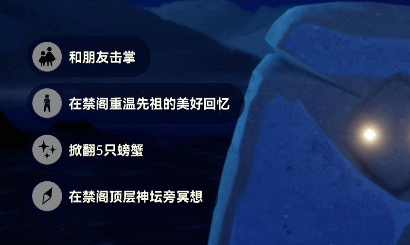 以上就是关于光遇11.4每日任务怎么做的全部内容了,今天的季节每日任务主要都刷新在禁阁,大家快和小伙伴们一起去完成任务吧~