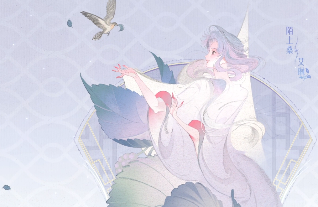 我们将《小雅·隰桑》中的诗句“隰桑有阿,其叶有沃。既见君子,云何不乐。”融入女声吟唱背景,以淡雅的民乐、轻盈的小打击乐与温柔美好的和声氛围,表现艾琳灵动的气质。