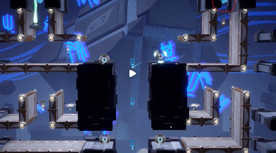 2、收集完成后,前往上方右侧机关,会看到2个不用转动的道具。